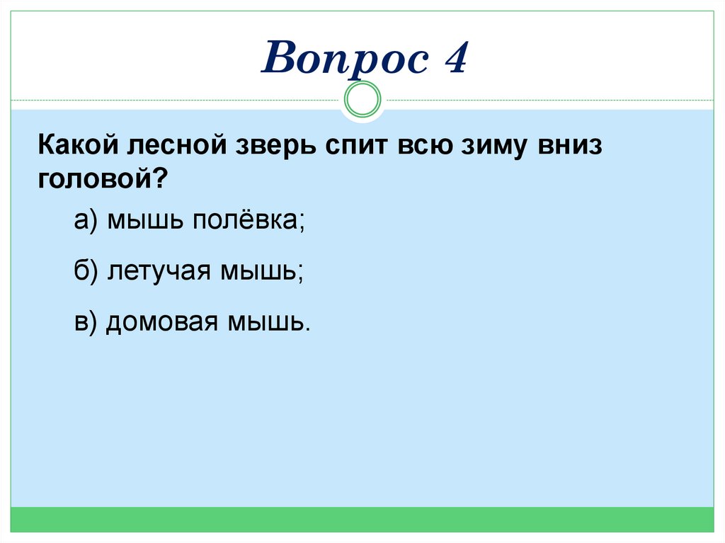 Вопрос 4Какой лесной зверь спит всю зиму вниз