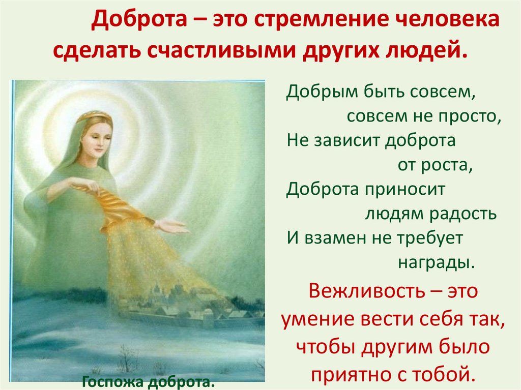 Доброта – это стремление человекасделать счастливыми других людей.