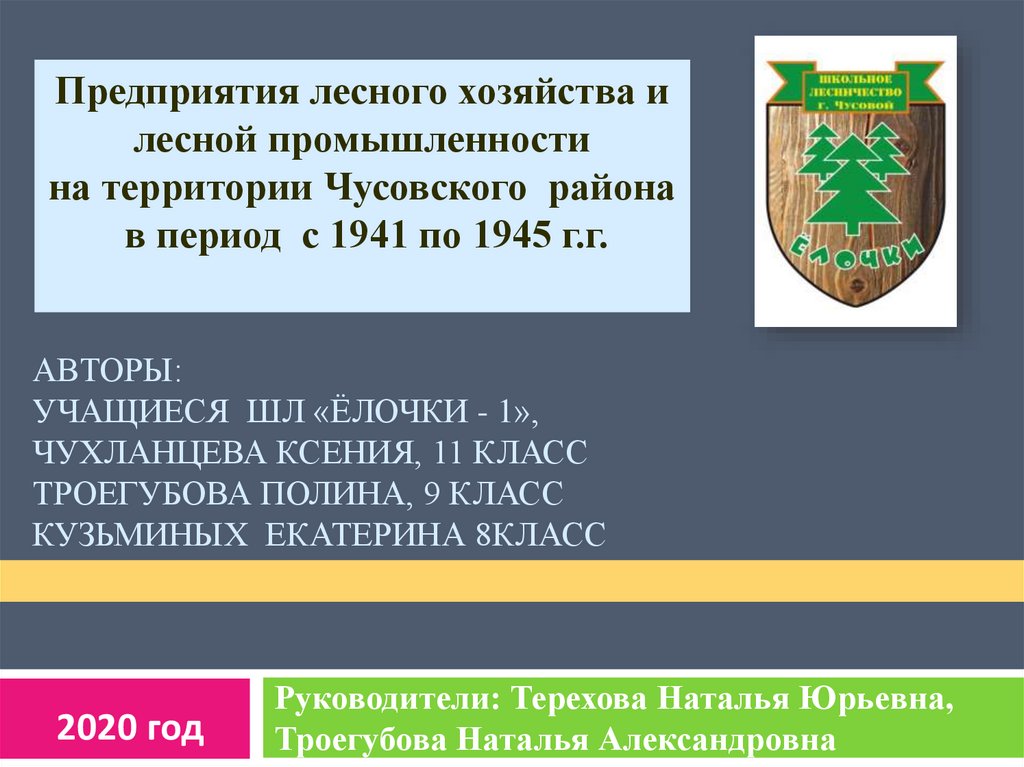 1. авторы: учащиеся ШЛ «Ёлочки - 1», Чухланцева ксения, 11 класс Троегубова полина, 9 класс кузьминых екатерина 8класс