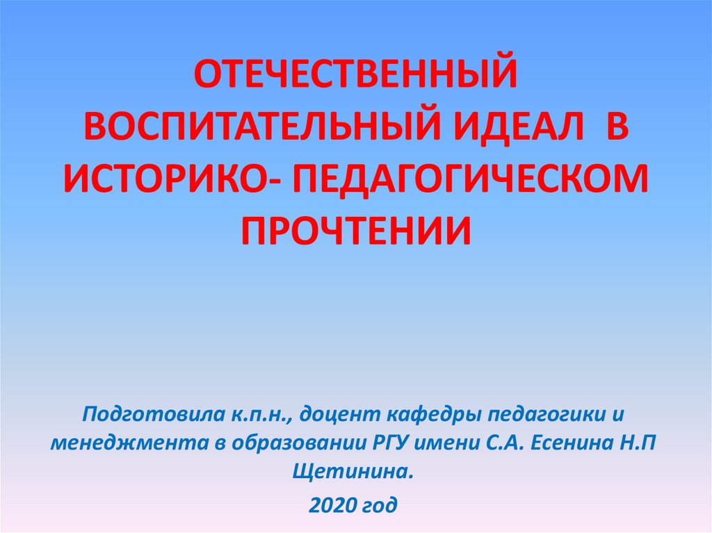 ОТЕЧЕСТВЕННЫЙВОСПИТАТЕЛЬНЫЙ ИДЕАЛ В