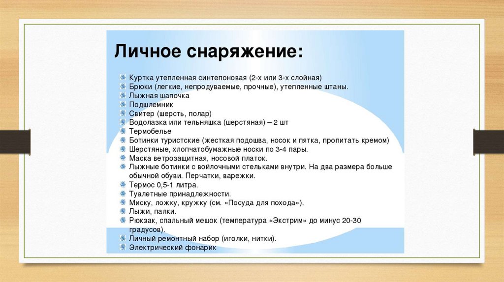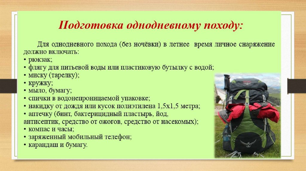 Подготовка к походу (6 класс)
