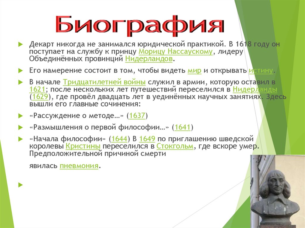 «Начала философии» (1644) В 1649 по приглашению шведской