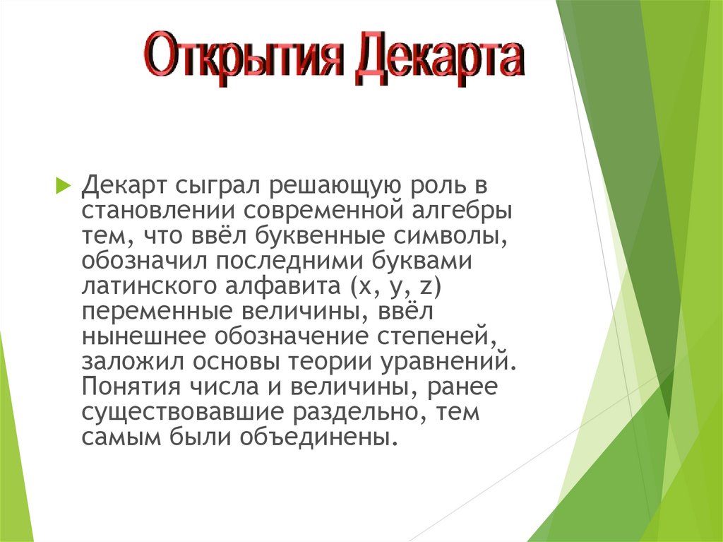Крупнейшим открытиям Декарта, ставшимфундаментальным для последующей