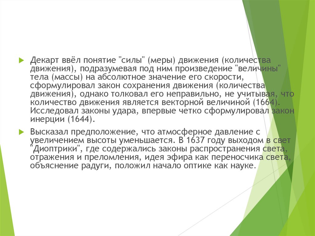 Декарт ввёл понятие "силы" (меры) движения (количествадвижения), подразумевая под ним произведение "величины"
