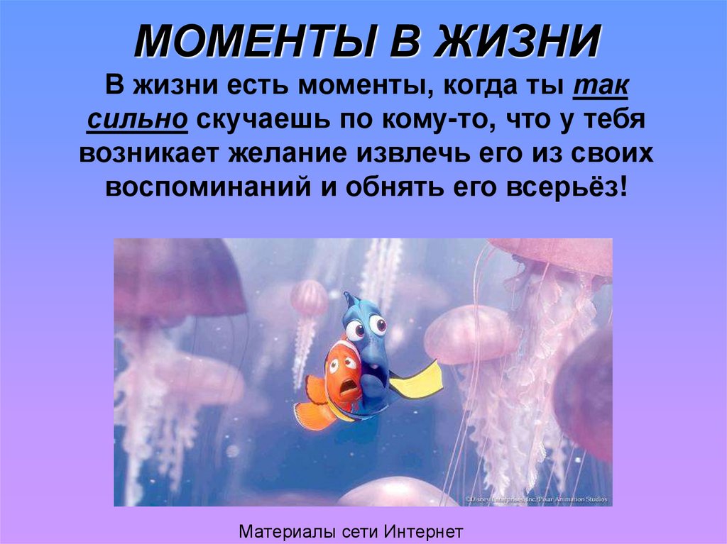 1. МОМЕНТЫ В ЖИЗНИ В жизни есть моменты, когда ты так сильно скучаешь по кому-то, что у тебя возникает желание извлечь его из