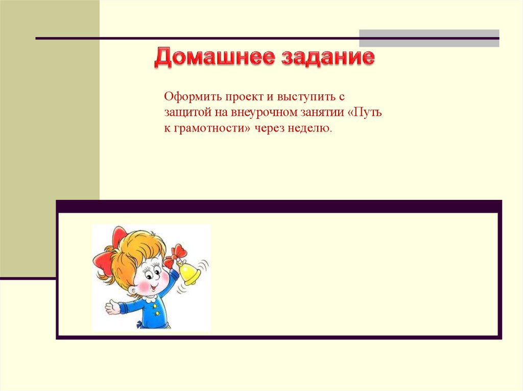 Оформить проект и выступить сзащитой на внеурочном занятии «Путь