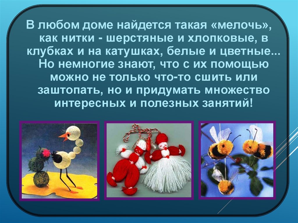 В любом доме найдется такая «мелочь»,как нитки - шерстяные и хлопковые, в