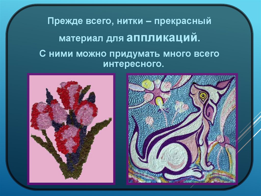 Прежде всего, нитки – прекрасныйматериал для аппликаций.