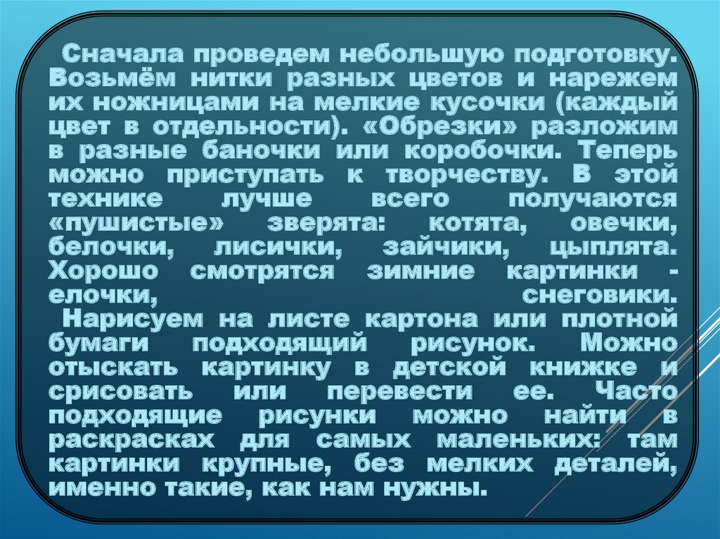 Сначала проведем небольшую подготовку.Возьмём нитки разных цветов и нарежем