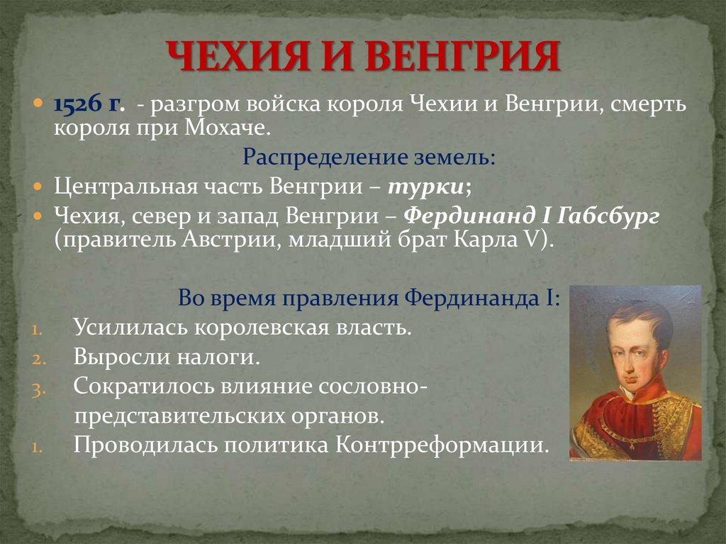Чехия, север и запад Венгрии – Фердинанд I Габсбург