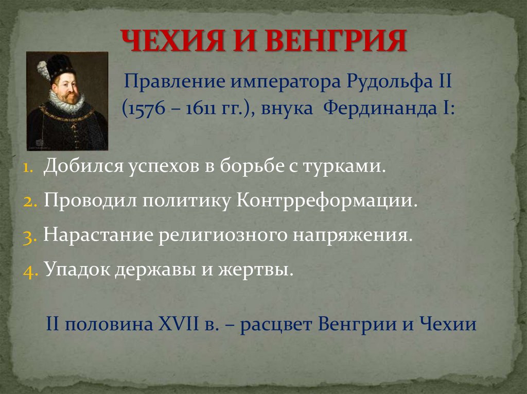 Правление императора Рудольфа II(1576 – 1611 гг.), внука Фердинанда I: