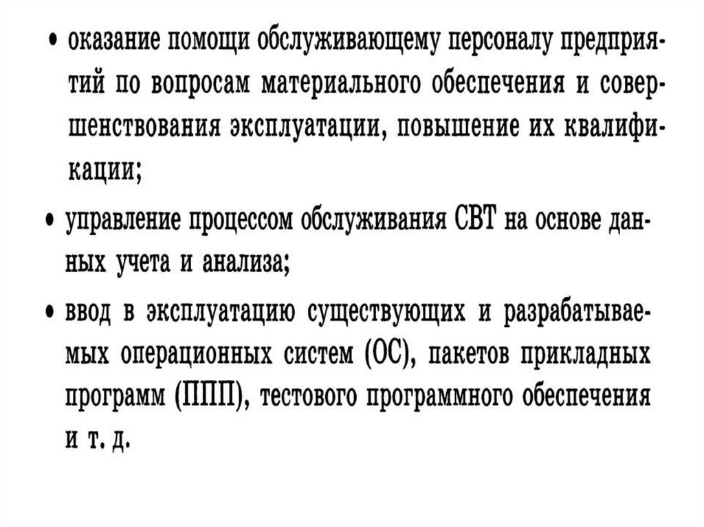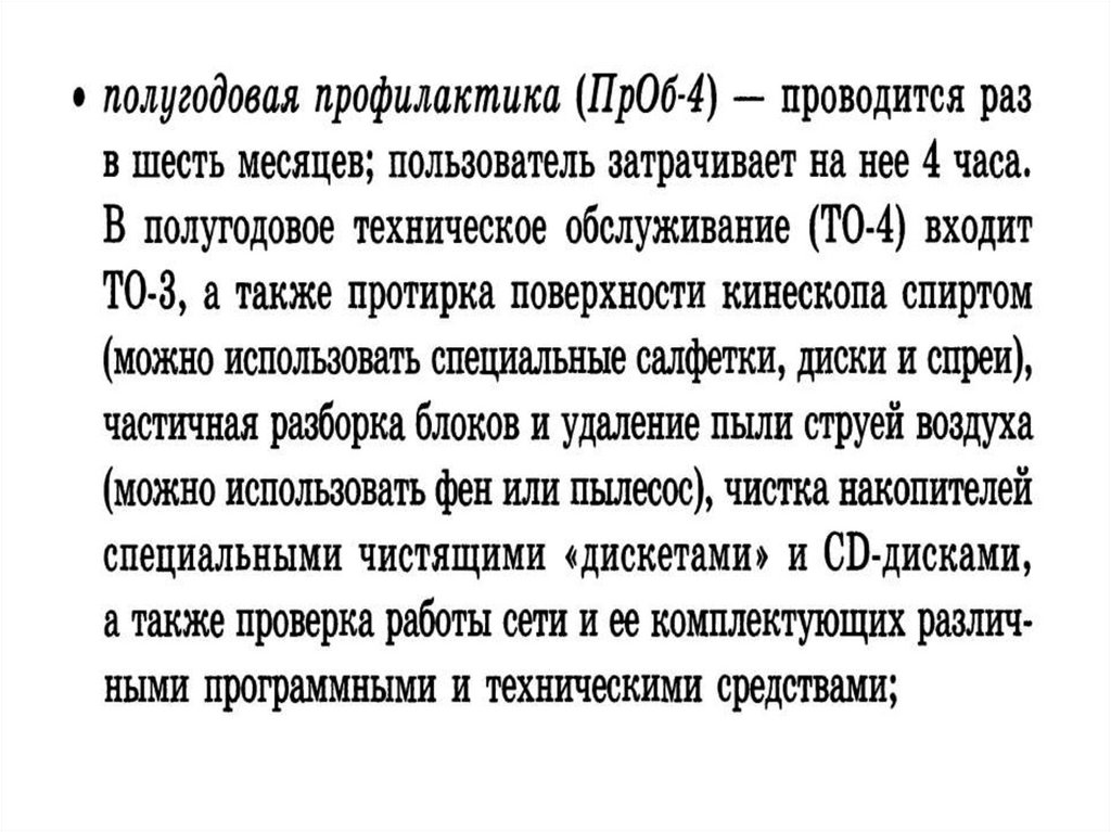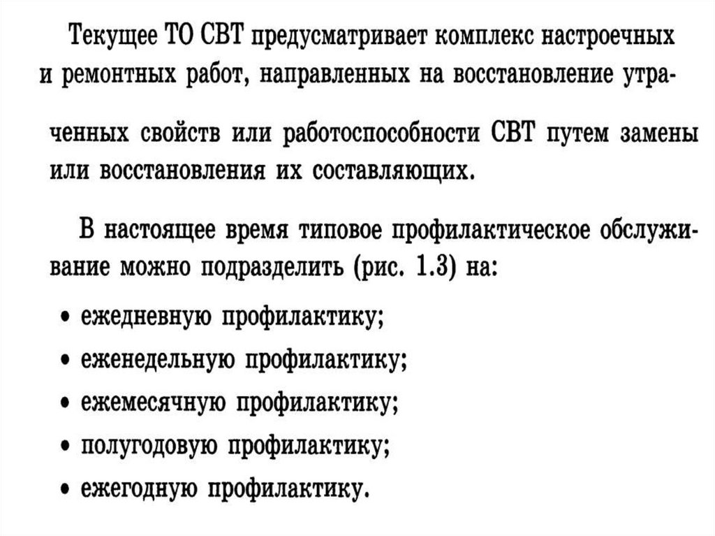 3. Техническое обслуживание СВТ включает в себя следующие этапы