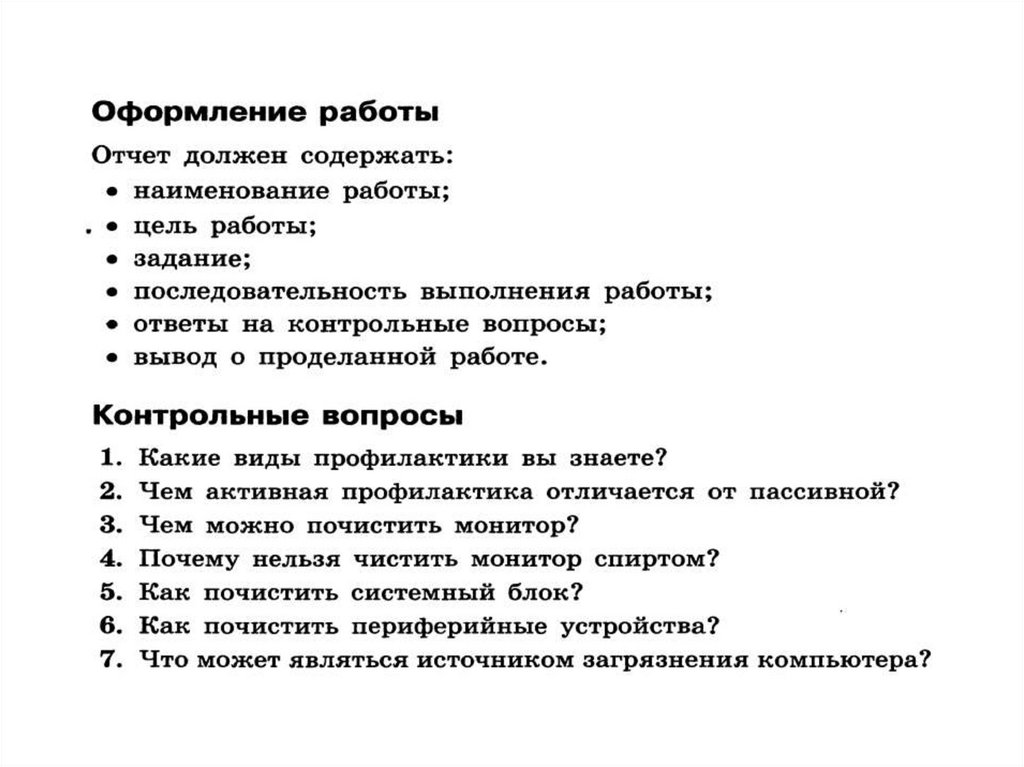 • Все виды работ, связанные спрофилактикой (уход за внешним