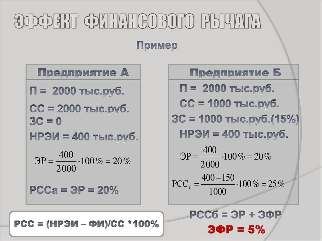 Эффект финансового рычага – это приращение крентабельности собственных средств, получаемое