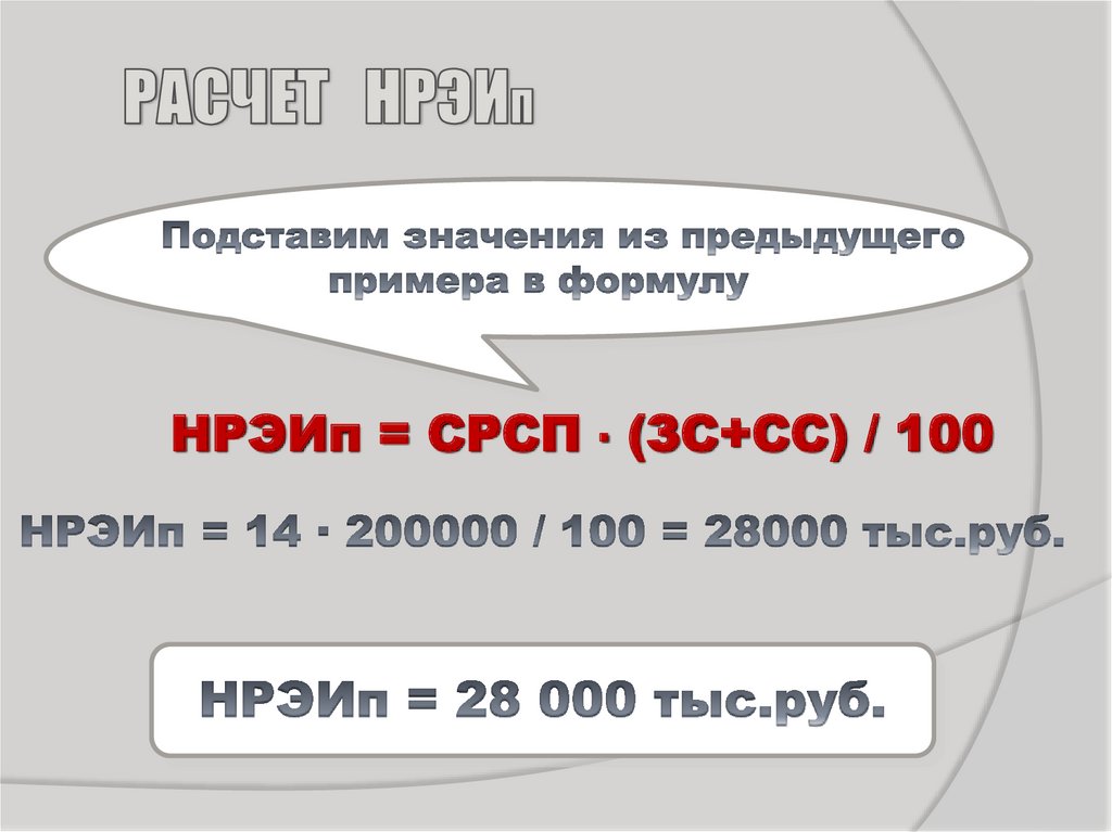 НРЭИп = СРСП ∙ (ЗС+СС) / 10023.