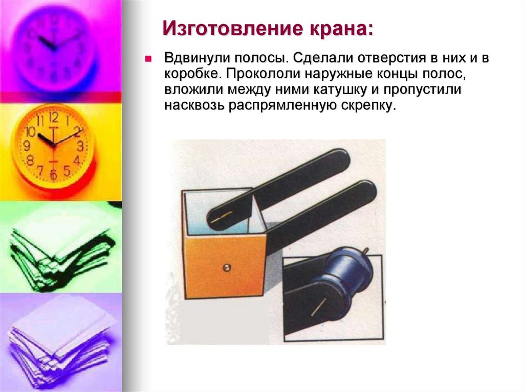 Изготовление крана:Далее согнули из скрепки ручку. Приклеили ее