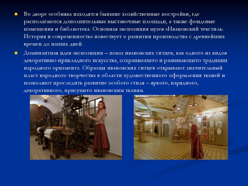 помещения и библиотека. Основная экспозиция музея «Ивановский текстиль.