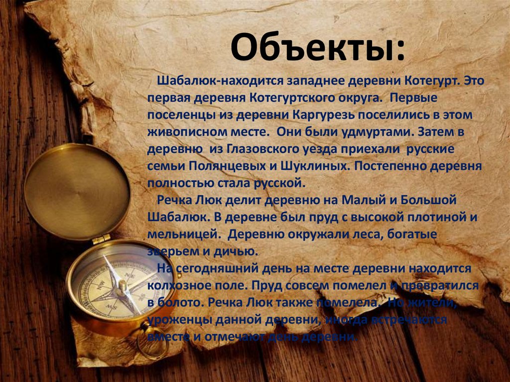Объекты:Шабалюк-находится западнее деревни Котегурт. Это