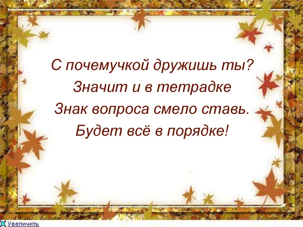 С почемучкой дружишь ты?Значит и в тетрадке