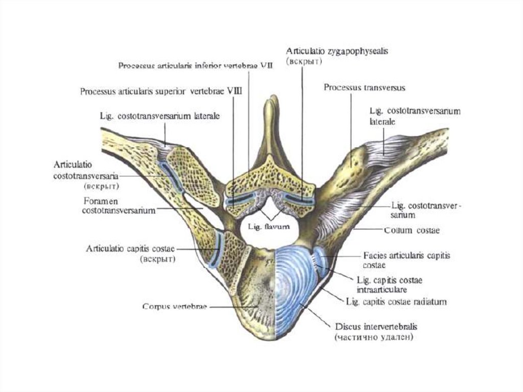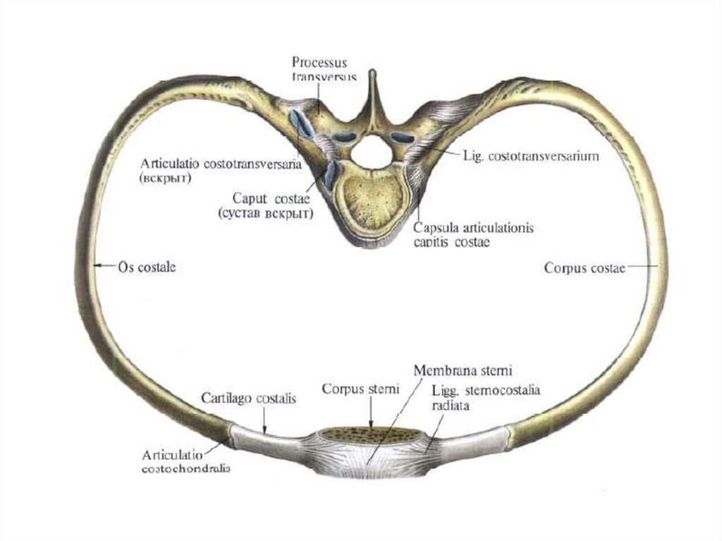 Соединение ребер с позвонками, грудиной,между собой. Грудная клетка в целом.