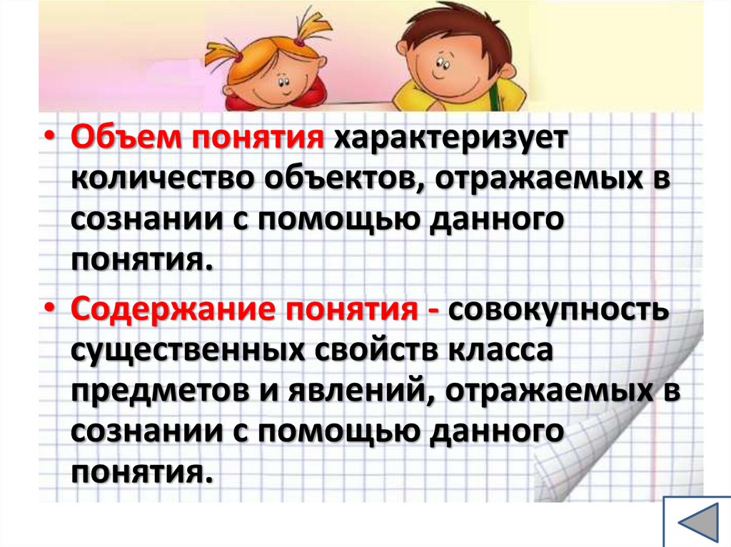 • Объем понятия характеризуетколичество объектов, отражаемых в