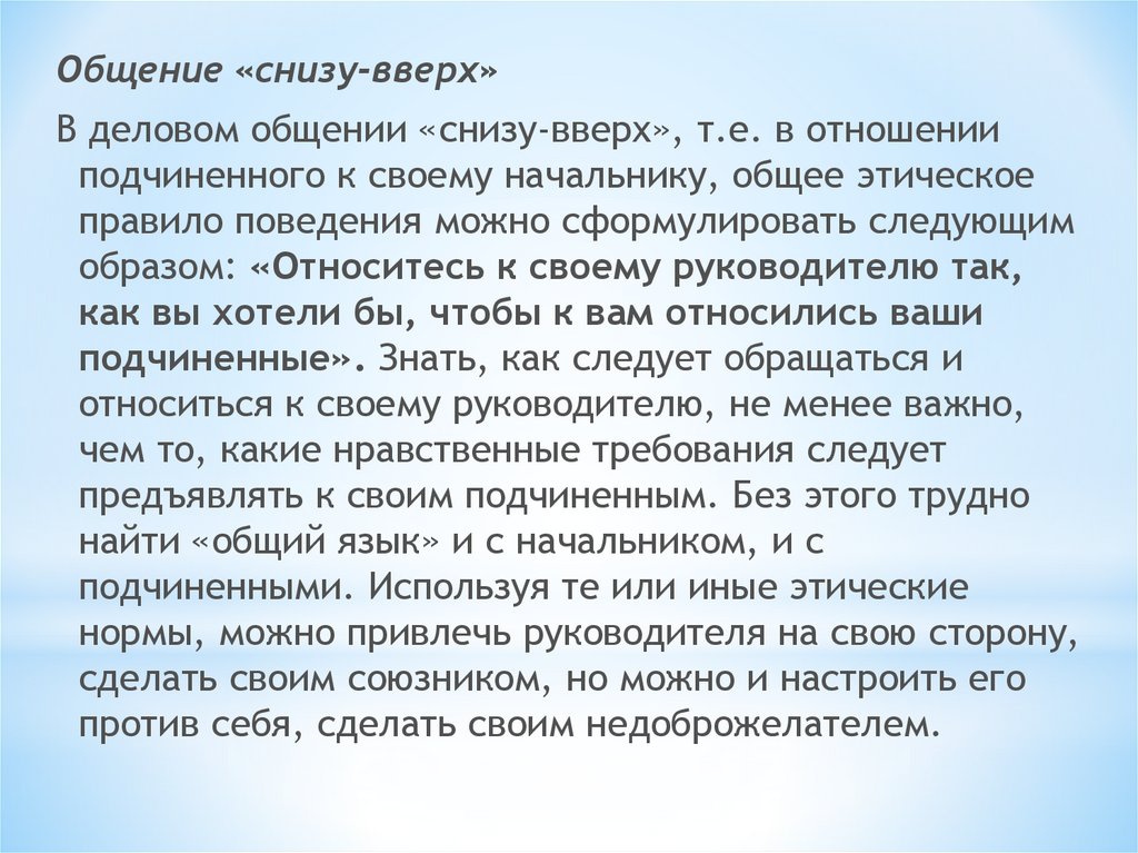 Общение «по горизонтали»Общий этический принцип общения «по горизонтали», т.е.