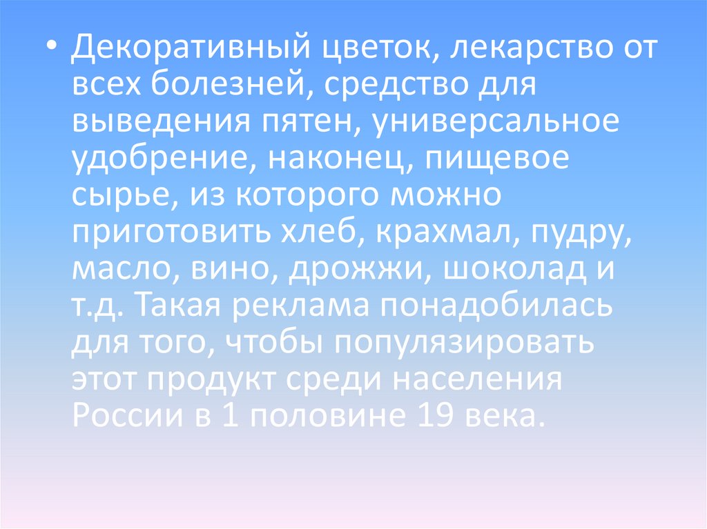 • Декоративный цветок, лекарство отвсех болезней, средство для