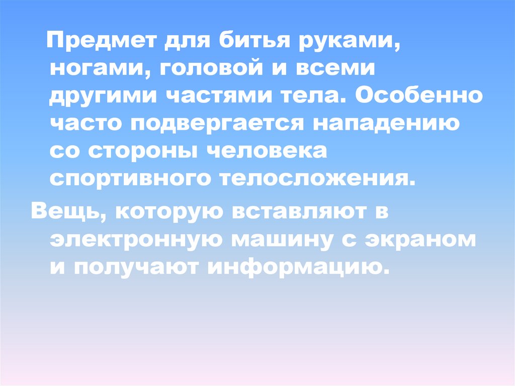 Предмет для битья руками,ногами, головой и всеми