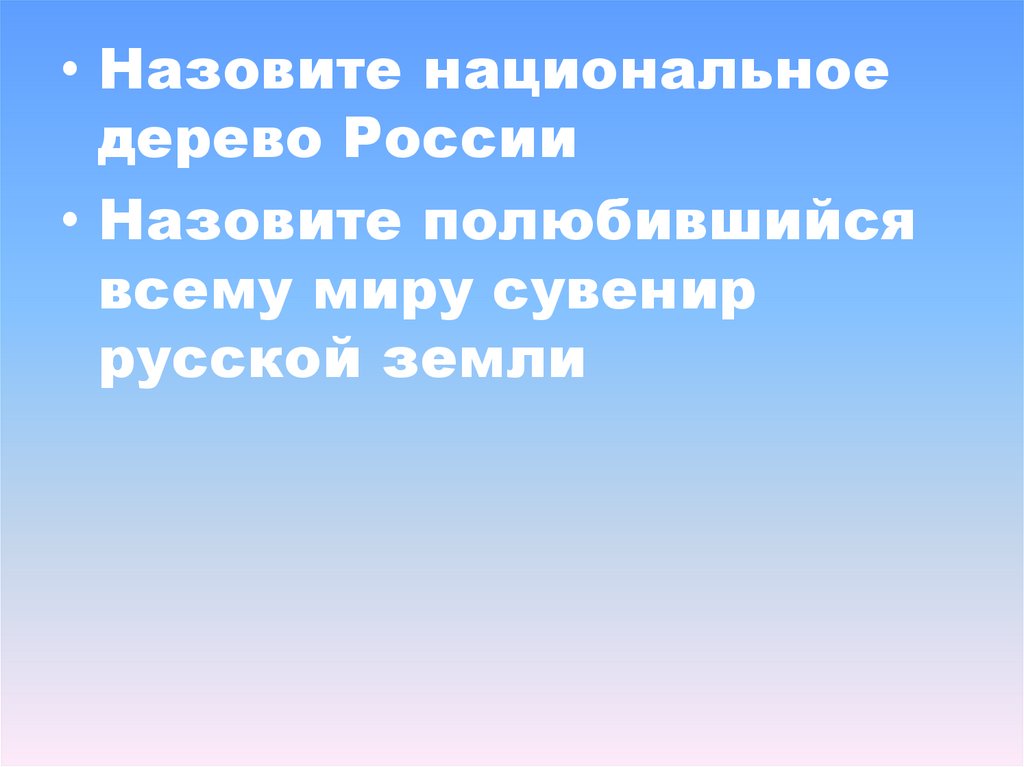 • Назовите национальноедерево России