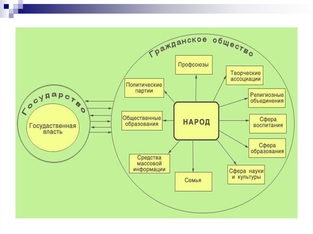 2. Политическая система общества совокупность государственных и негосударственных институтов, посредством которых граждане