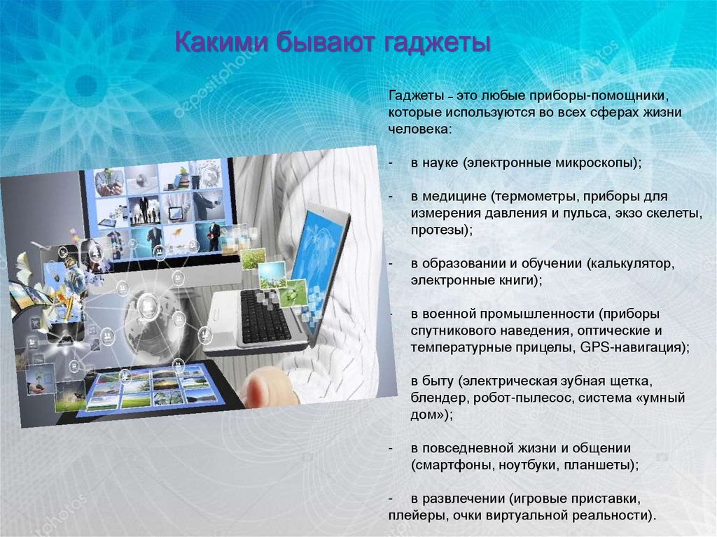 Какими бывают гаджетыГаджеты ˗ это любые приборы-помощники,