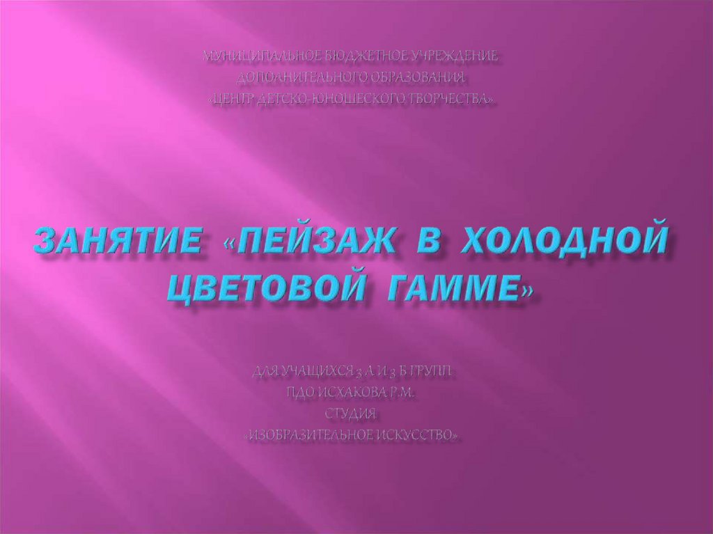 1. Муниципальное бюджетное учреждение дополнительного образования «Центр детско-юношеского творчества» Занятие «Пейзаж в холодной