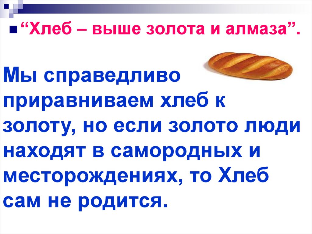 “Хлеб– выше золота и алмаза”.