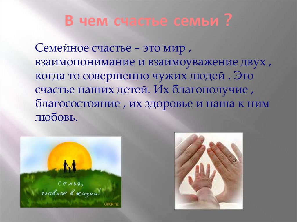 В чем счастье семьи ?Семейное счастье – это мир ,