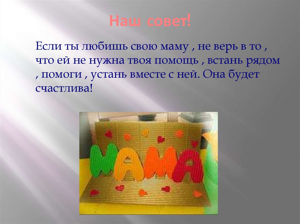 Наш совет!Если ты любишь свою маму , не верь в то ,