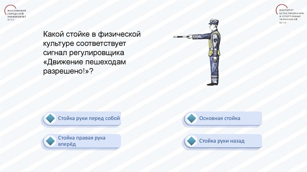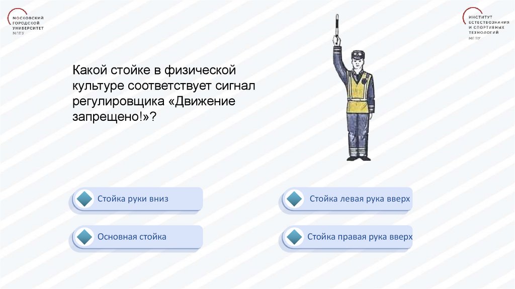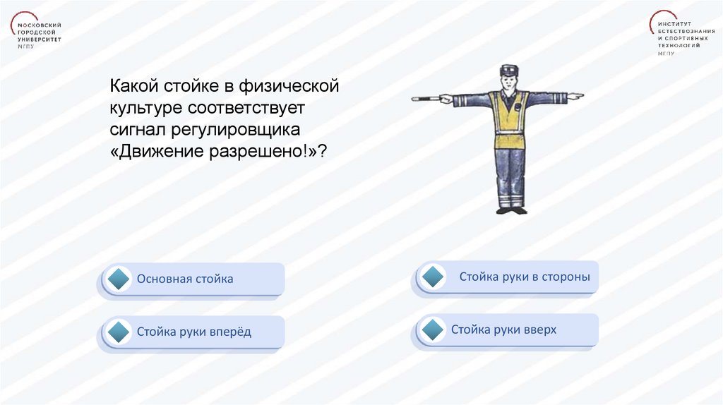 Какой стойке в физическойкультуре соответствует сигнал