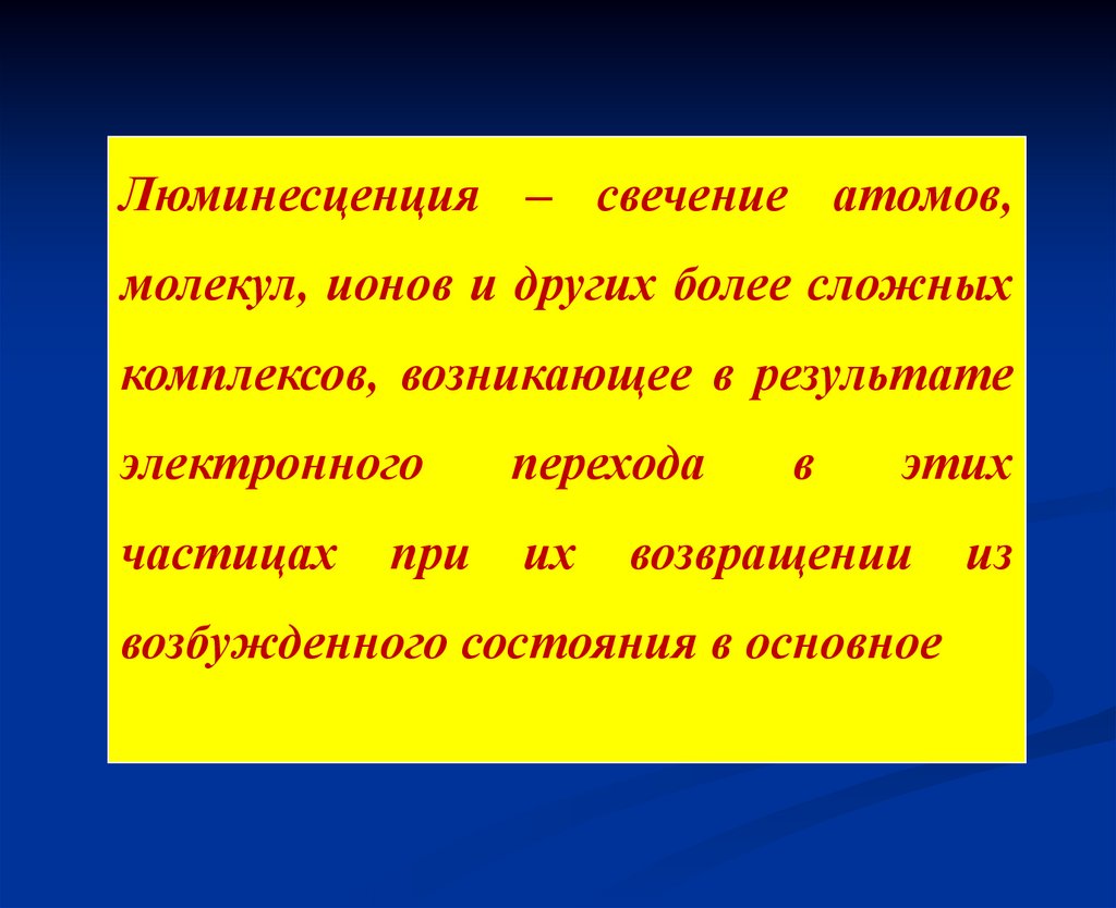 Люминесценция – свечение атомов,молекул, ионов и других более сложных