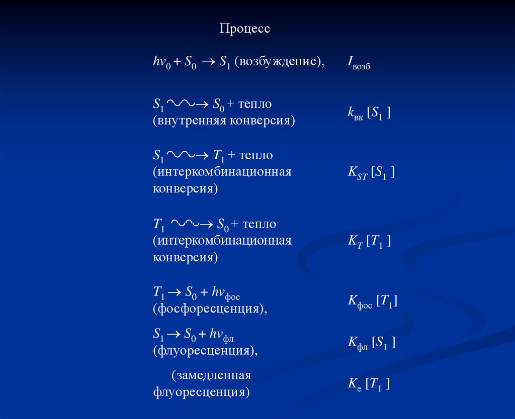 Процессhv0 + S0 S1 (возбуждение),