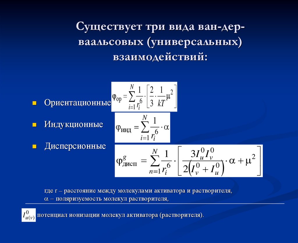 • Энергия взаимодейстия,Eia , между двумя идентичными диполями is
