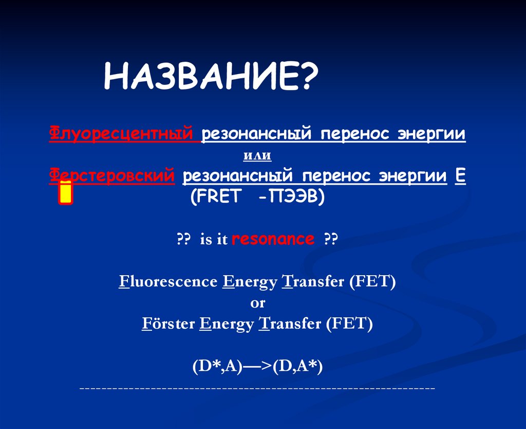 (донор) к другой (акцептор) из-за дальнодействующего диполь-дипольного
