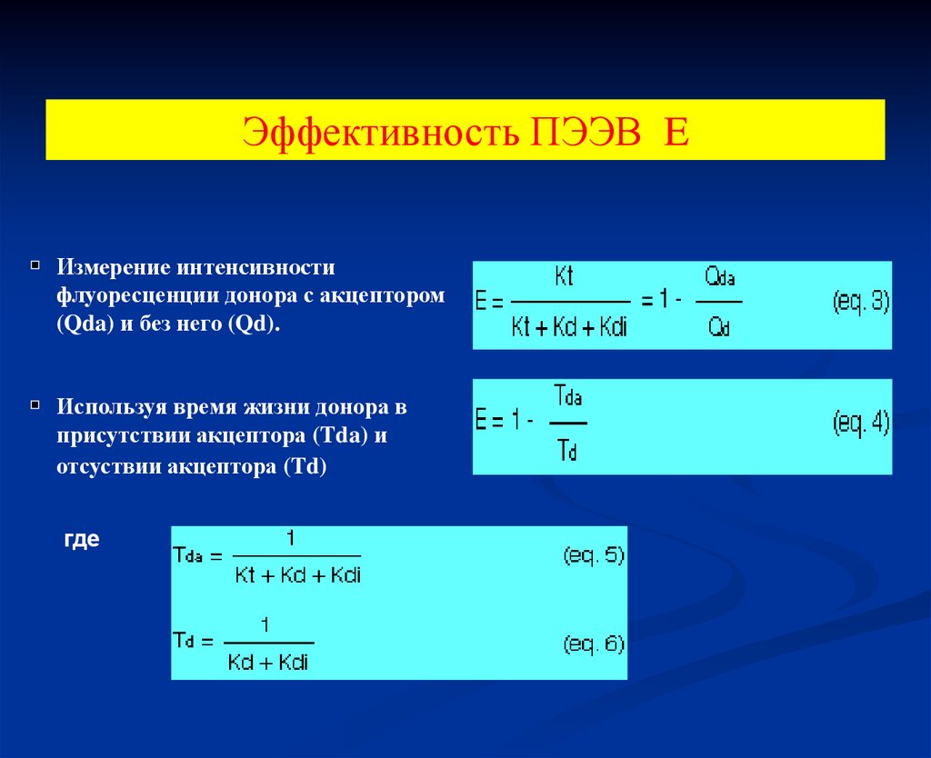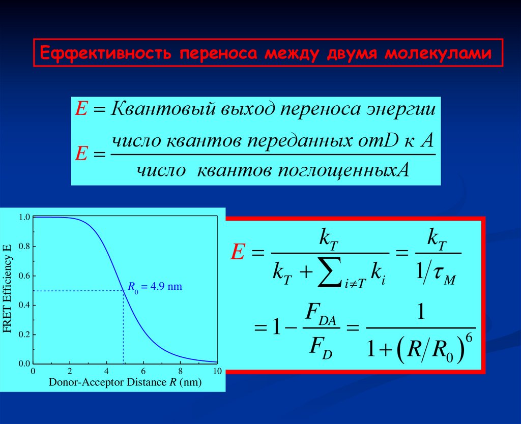 Eффективность переноса между двумя молекуламиE Квантовый выход переноса энергии