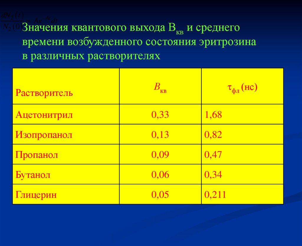 времени возбужденного состояния эритрозина