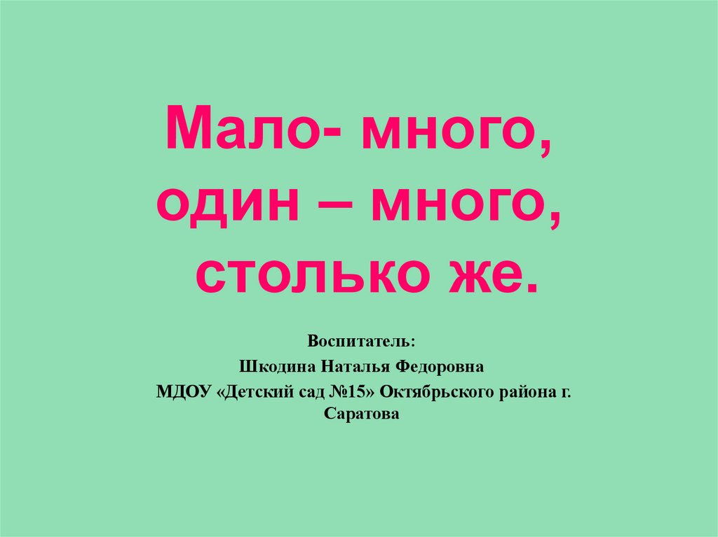 Мало- много, один – много, столько же