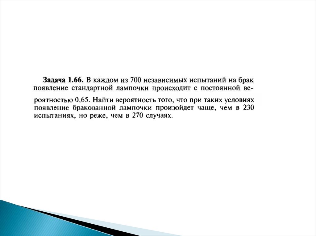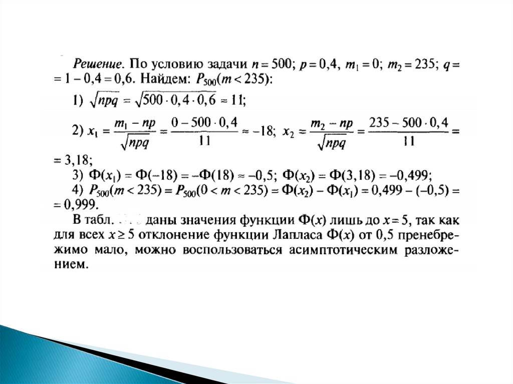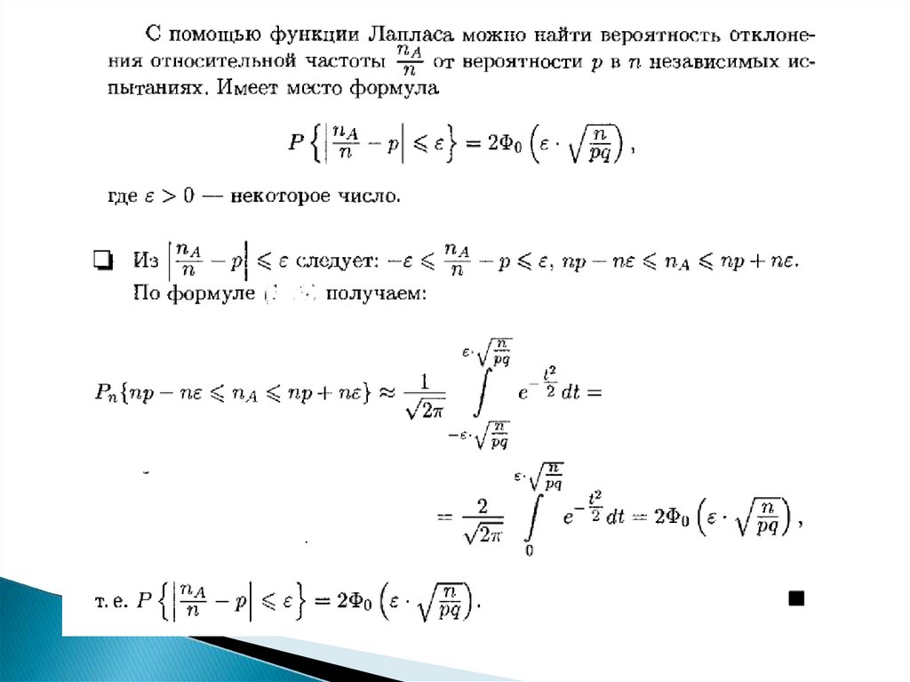 1. Интегральная теорема Лапласа. Вероятность отклонения относительной частоты от постоянной вероятности в независимых испытаниях