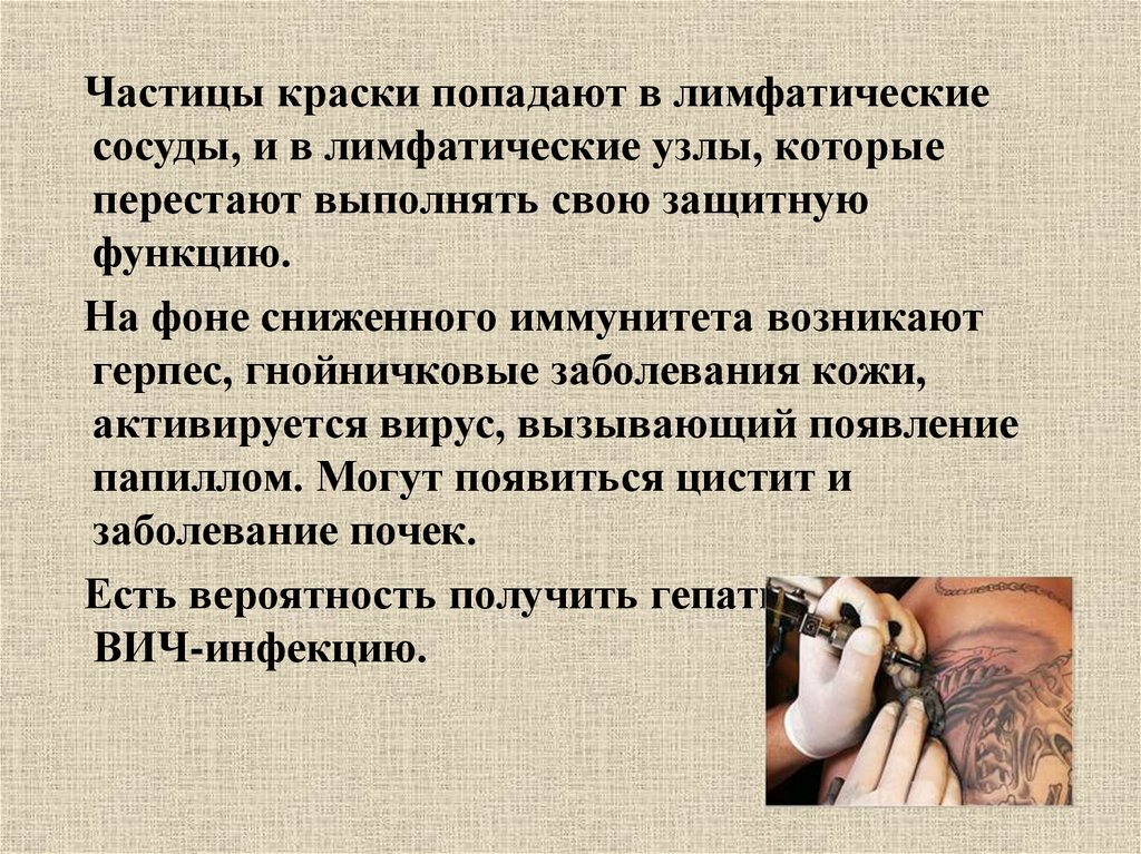 Татуировка – это внедрение в кожу невыводимых,нестираемых пигментов с целью создания на теле