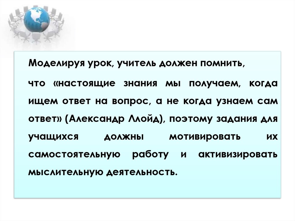 Моделируя урок, учитель должен помнить,что «настоящие знания мы получаем, когда