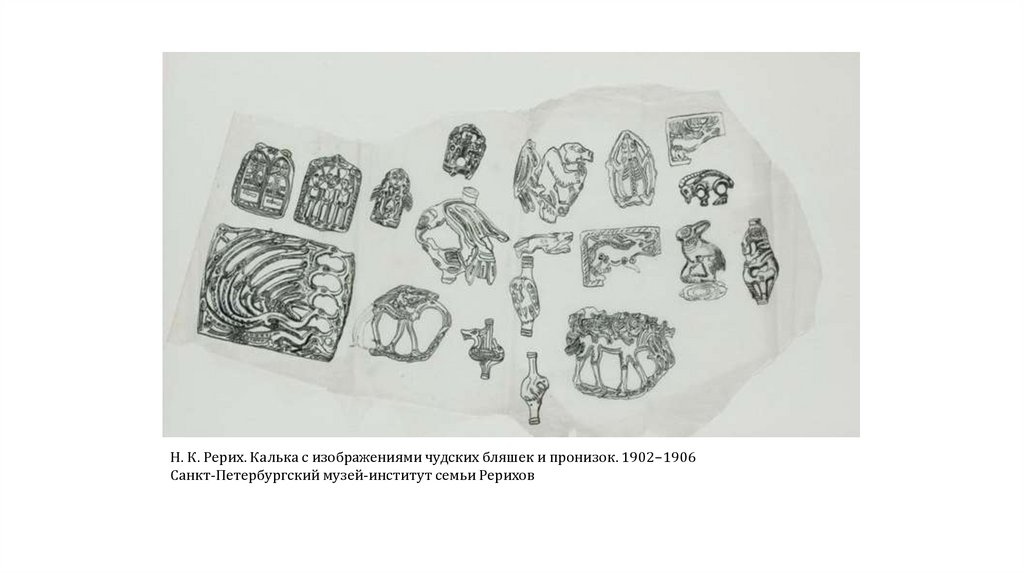 Н. К. Рерих. Калька с изображениями чудских бляшек и пронизок. 1902−1906Санкт-Петербургский музей-институт семьи Рерихов