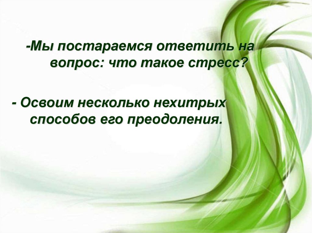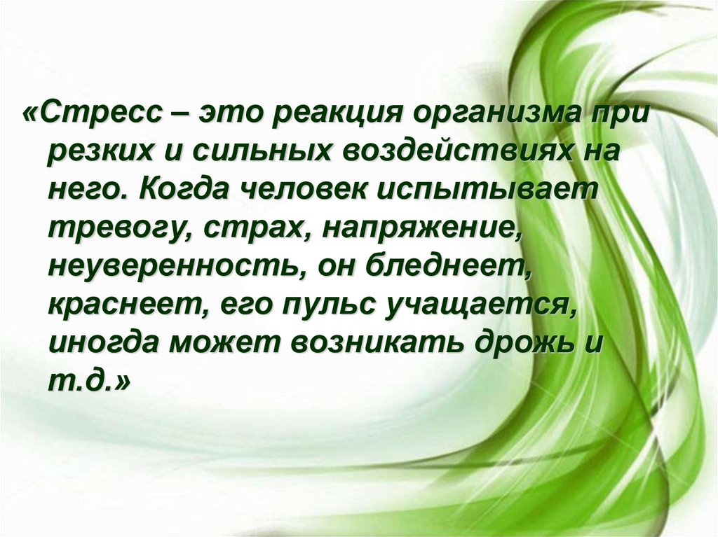 «Стресс – это реакция организма прирезких и сильных воздействиях на