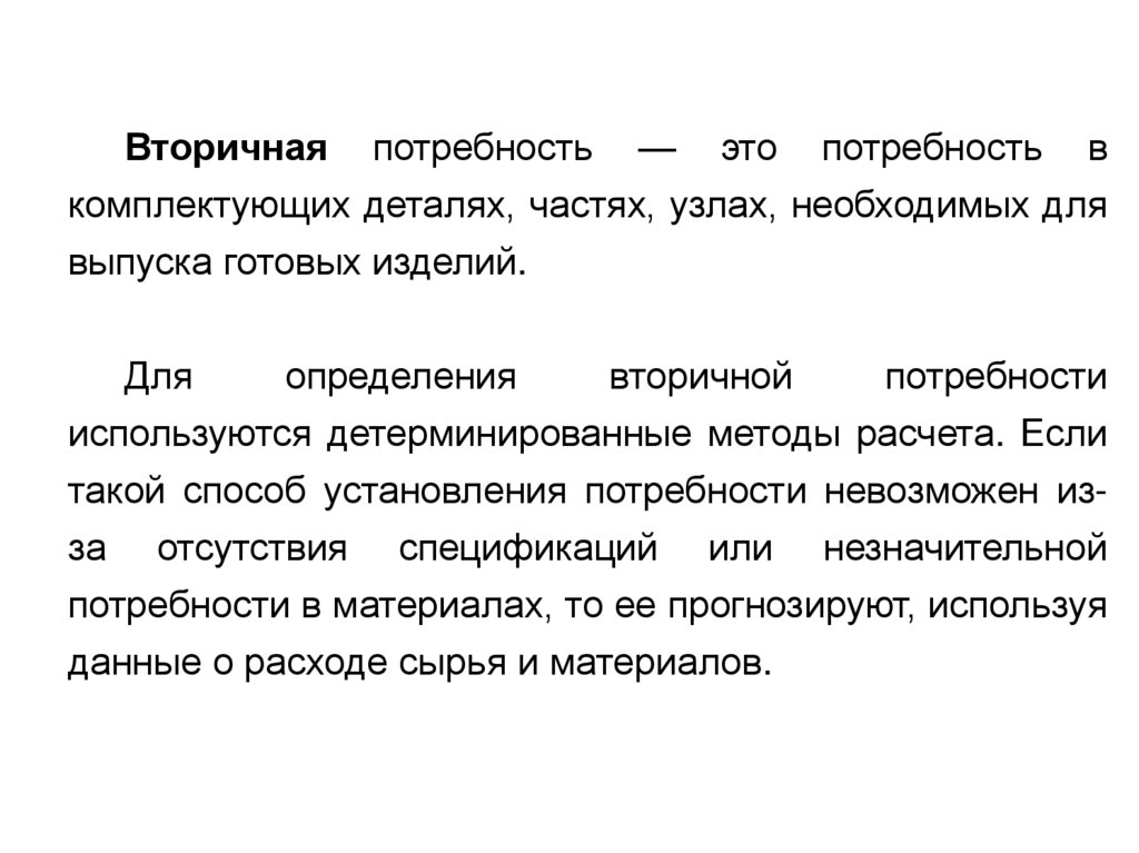 использования. Общая потребность в материальных