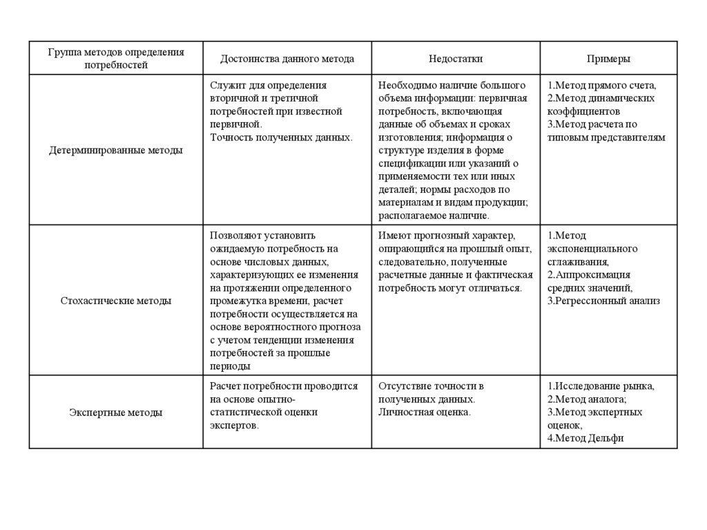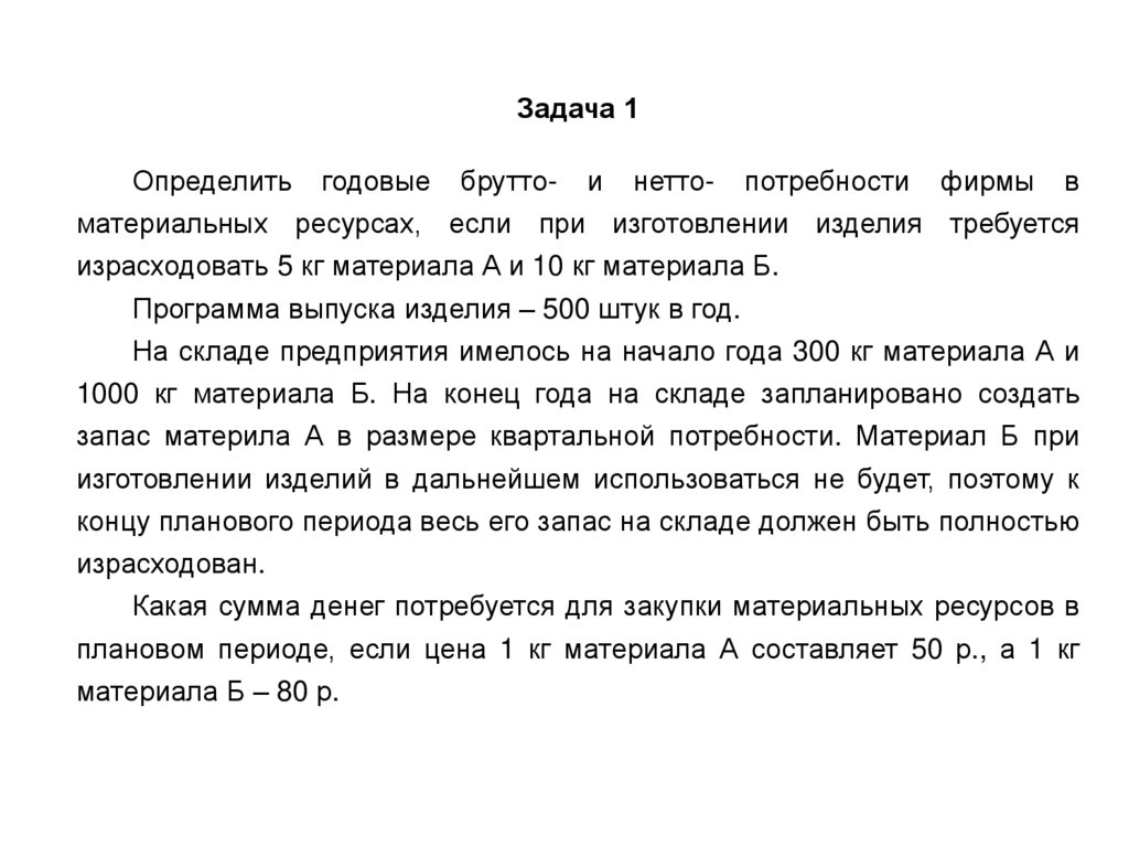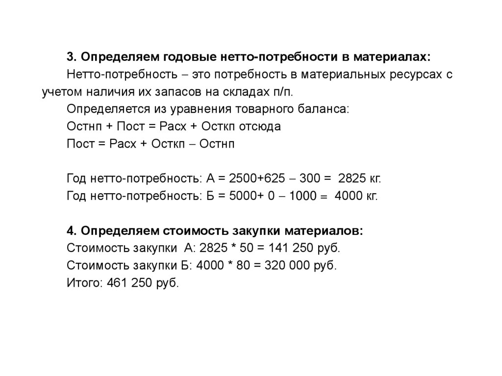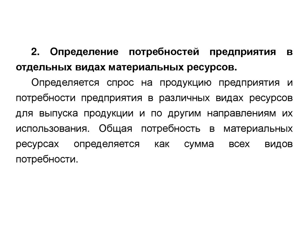 2. Определение потребностей предприятия вотдельных видах материальных ресурсов.